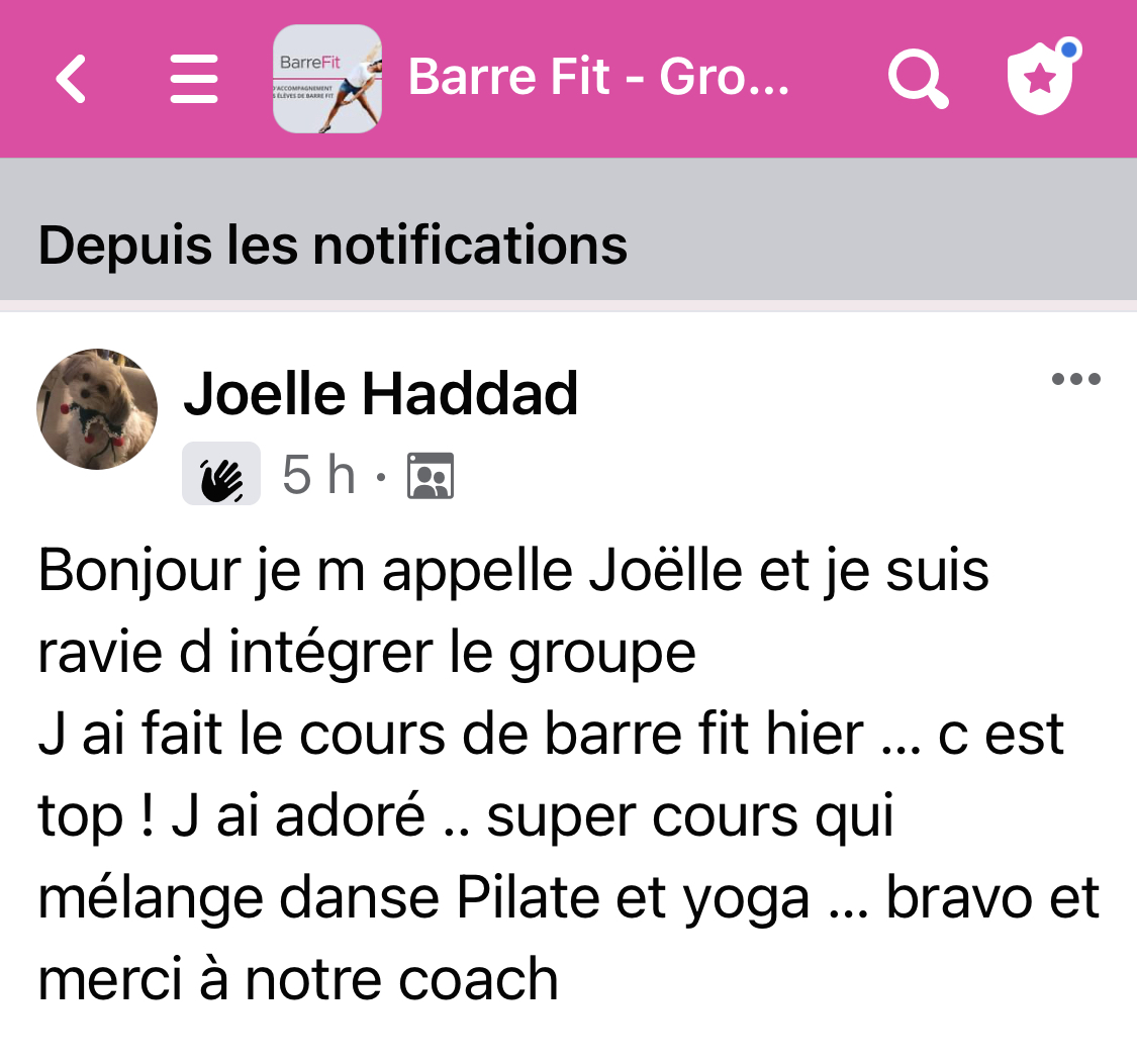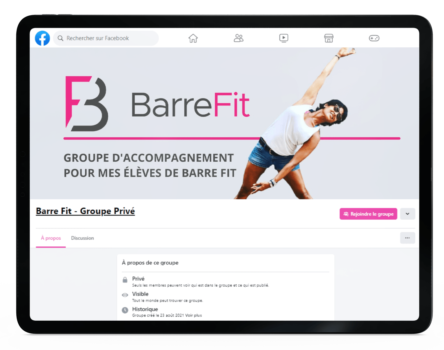 Vous recevrez également un accès immédiat à un groupe privé sur Facebook dédié à l'accompagnement de tous mes élèves qui ont acheté des formations Barre Fit.